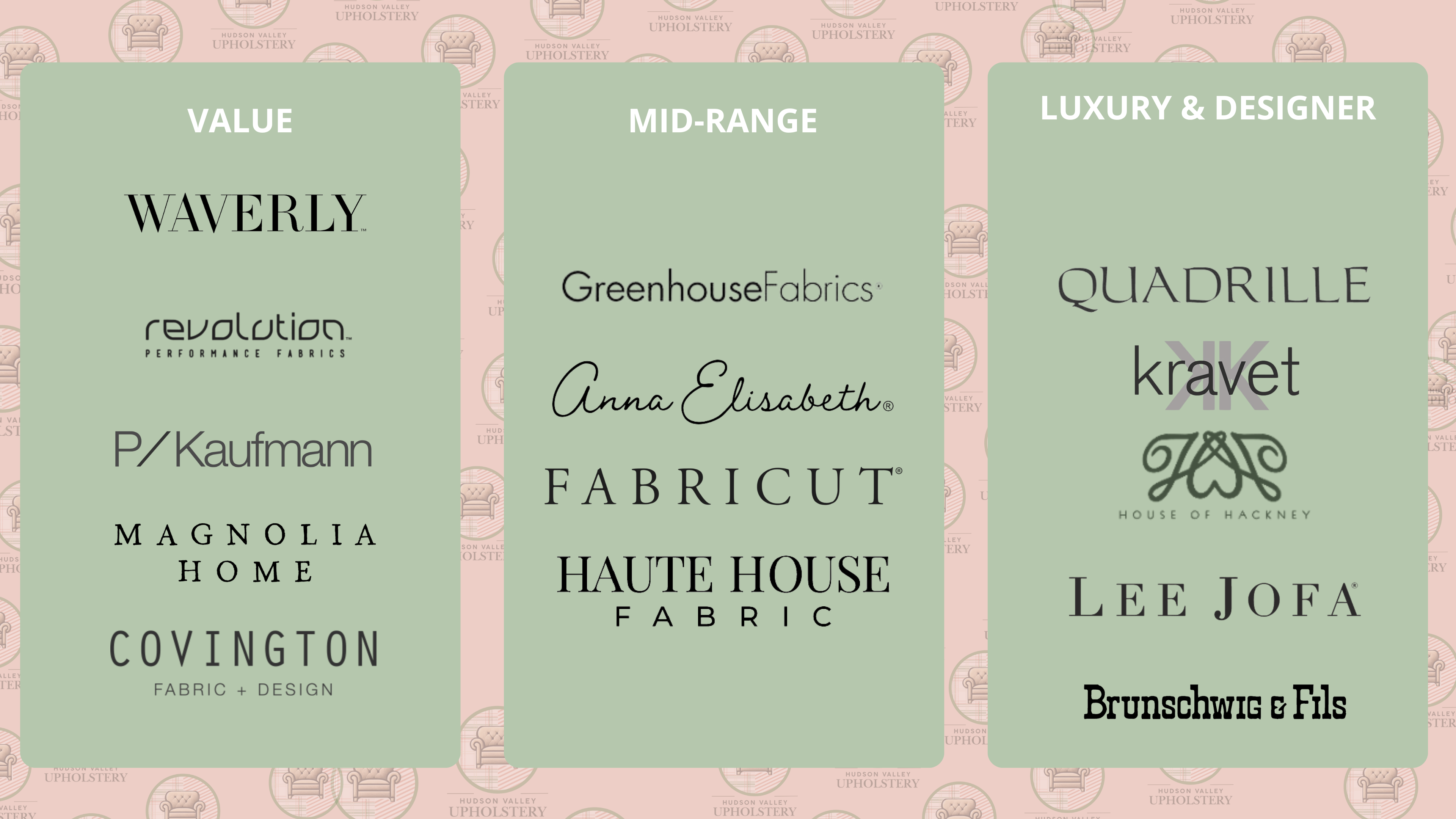 We carefully choose our vendors based on popularity, design, and demand, ensuring a diverse range of high-quality upholstery fabrics. Our partnerships are constantly evolving, with new suppliers added regularly. Here, you'll find a curated list of our fabric suppliers, arranged from affordable options to luxury price points.